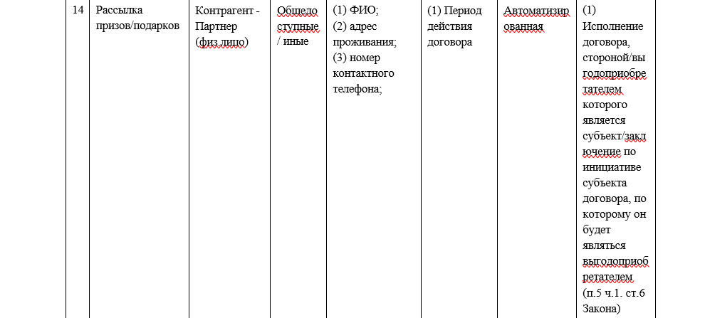 (2) ПД являются избыточными для заявленной цели;