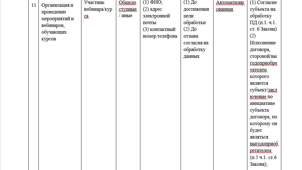 3.6.1. Оператор прекращает обработку персональных данных: